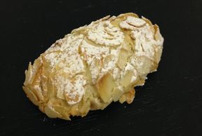 Traditional Italian amaretti biscuit shaped into logs and covered in flaked almonds.